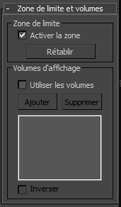 Panneau déroulant Zone de limite et volumes