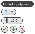 Extruder polygones utilise l'interface de chariot lorsque l'option Activer commandes chariot est activée. Lorsque cette dernière est désactivée, la boîte de dialogue des paramètres standard est utilisée. Pour plus de détails sur l'utilisation des commandes du chariot, reportez-vous à la rubrique Interface du chariot.