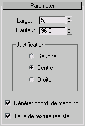 Les valeurs par défaut provoquent la création d'un objet Mur de 5 unités de largeur, 96 unités de hauteur, justifié au centre.