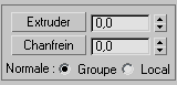 Ces commandes permettent d'extruder les arêtes et les faces, de chanfreiner des sommets et des arêtes, et de biseauter des faces. L’extrusion des arêtes est similaire à l'extrusion des faces. Vous pouvez appliquer ces outils de façon interactive (en faisant glisser les sous-objets) ou de façon numérique (en vous servant des doubles flèches).
