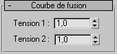 La " tension " affecte la tangente située entre une courbe parent et la courbe de fusion. Plus la tension est élevée, plus la tangente est parallèle à la courbe parent et plus la transition est régulière. A l'inverse, plus la tension est basse, plus l'angle de tangente est élevé et plus la transition entre le parent et la fusion est prononcée.