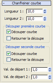 Ces deux zones permettent de contrôler la façon dont les courbes parents sont découpées. Les commandes sont identiques dans les deux zones. " Première " et " seconde " dépendent de l'ordre dans lequel vous avez sélectionné les courbes parents.