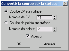 Si la courbe est déjà une courbe sur surface, ce bouton permet de passer d'une courbe de points à une courbe CV sur surface ou inversement.
