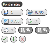 Si vous effectuez plus de deux sélections appropriées, l'option Pont les relie par ordre croissant d'ID. Par exemple, si vous sélectionnez les arêtes 12, 35 et 89, l'option Pont relie les deux premiers. Si vous désélectionnez ensuite l'arête 35, l'option Pont relie les arêtes 12 et 89.