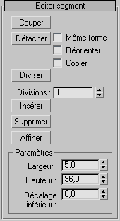 Ce panneau déroulant apparaît lorsque vous sélectionnez un objet Mur et que vous accédez ensuite au niveau de sous-objet Segment.