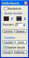 La boîte de dialogue Outils boucle contient des outils permettant de régler la distance entre les boucles, d'incurver les boucles, etc.