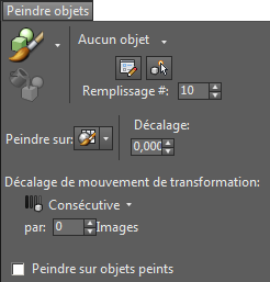 Permet de désigner un seul objet Peinture. Cliquez sur Choisir objets, puis sélectionnez un objet. Pour désigner des objets Peinture supplémentaires, répétez l'opération. Disponible uniquement lorsque l'option Peindre est désactivée.