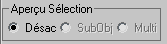 Cette option vous permet d'avoir l'aperçu de la sélection d'un sous-objet avant de l'engager. Vous pouvez afficher un aperçu au niveau de sous-objet courant ou passer automatiquement d'un niveau de sous-objet à l'autre en fonction de la position de la souris. Les choix sont les suivants :