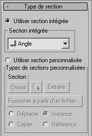 Choisissez cette option si vous avez créé votre propre section ou s'il existe une autre forme dans la scène courante ou dans un autre fichier MAX que vous souhaitez utiliser comme section.