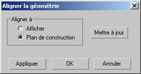 Cette boîte de dialogue spécifique à Editer poly permet de changer de méthode d'axe après l'utilisation de la fonction Alignement vue ou Alignement grille. Elle est uniquement disponible en mode Animer après l'utilisation de la commande Alignement vue ou Alignement grille.