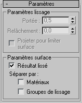 Applique des groupes de lissage à l'objet et restreint l'effet lissage maillage par des propriétés de surface.