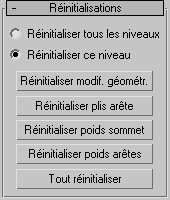 Ce panneau déroulant permet de rétablir les paramètres d'origine ou par défaut pour toutes les modifications apportées (transformation de sous-objets, modifications géométriques, des plis d'arêtes, du poids des sommets ou du poids des arêtes).