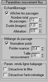 Ces options s'appliquent uniquement lors du rendu de l'effet mouvement flou, non au cours de la visualisation d'un aperçu dans les fenêtres.