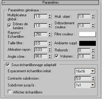 Conseil : l'option Taille filtre s'avère particulièrement utile lorsque le sous-échantillonnage adaptatif est désactivé et que Rayons/Echantillon possède une valeur faible.
