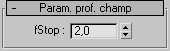 Le bouton arrêt peut avoir une valeur inférieure à 1.0. Bien que peu réaliste en termes de caméra réelle, une valeur aussi faible peut vous aider à régler la profondeur de champ des scènes dont l'échelle n'utilise pas des unités réalistes.