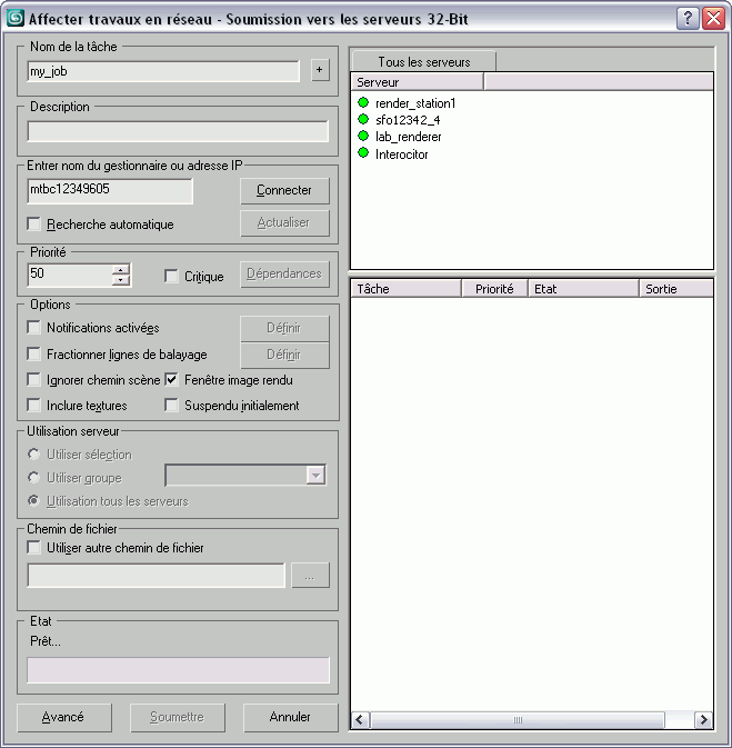 3ds Max ouvre la boîte de dialogue Affecter travaux en réseau.