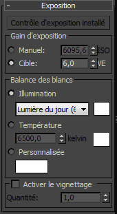 Par défaut, les paramètres de ce panneau déroulant remplacent les paramètres globaux du contrôle d'exposition Caméra physique.