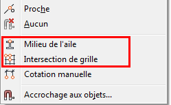 - Appuyez sur la touche Maj et cliquez sur le bouton droit de la souris pour afficher le menu contextuel Accrochage aux objets :