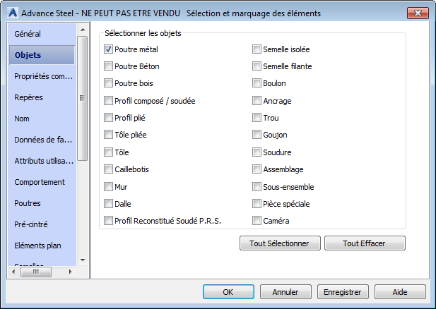 Dans l'onglet Objets, sélectionnez le ou les types d'objets que vous souhaitez afficher avec cette couleur.