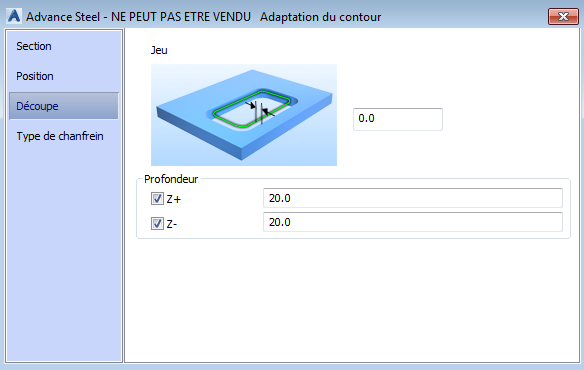 Permet de définir les limites supérieure et inférieure du contour (dans la direction de l'axe Z). ![]() |