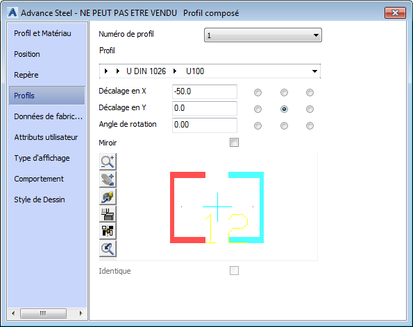 | Numéro de profil | Répertorie les index des éléments individuels dans la coupe complexe. Les index sont également affichés dans la zone d'aperçu. |