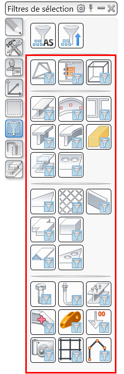 Palette d'outils Filtres de sélection : sélectionnez le type d'élément souhaité.