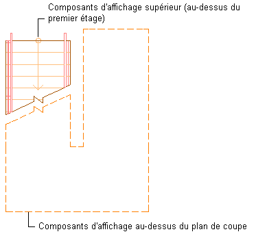 Il existe des composants qui permettent la prise en charge de la représentation des composants d'escalier au-dessus de l'élévation du plan de coupe. Ainsi, les composants d'escalier situés dans la partie inférieure sont utilisés uniquement pour afficher les composants d'escalier situés au-dessous du niveau en cours.