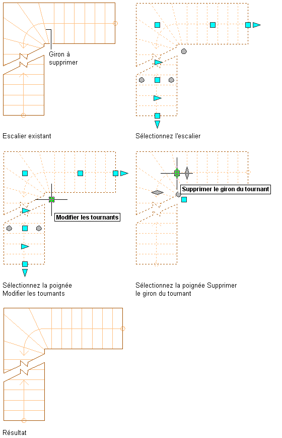 - Sélectionnez la poignée permettant de supprimer le giron d'un tournant.