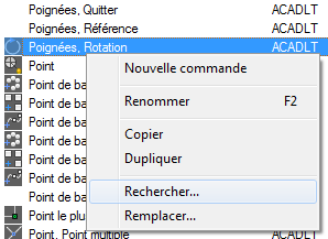 Un message s'affiche, détaillant l'emplacement de la commande, sa position exacte dans le volet Personnalisations dans ou Propriétés, ainsi que le nombre d'occurrences de la commande.