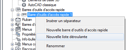 Une nouvelle barre d'outils d'accès rapide (appelée Barre d'outils d'accès rapide1) est placée en bas du noeud Barres d'outils d'accès rapide.