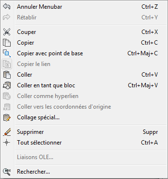 L'exemple suivant montre l'élément de menu Liaisons OLE dans le menu Edition marqué d'une coche et l'image de l'élément de menu Copier le lien est mise en surbrillance avec une bordure.
