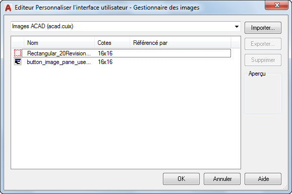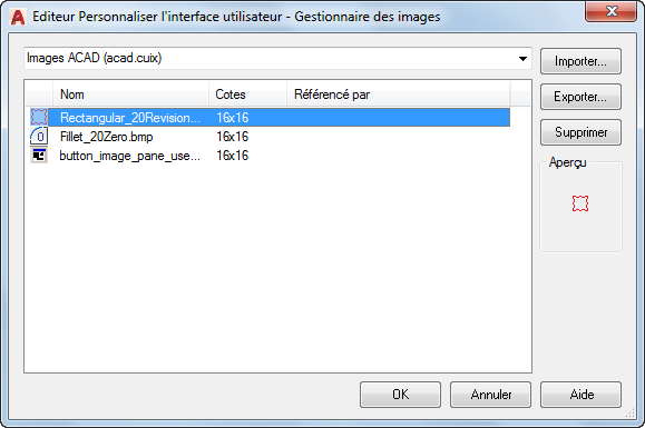 L'image est ajoutée à la liste des images et au fichier de personnalisation courant. Vous pouvez alors l'affecter à une commande.