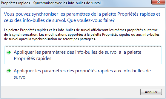 Synchronisation des propriétés rapides avec les info-bulles de survol