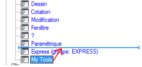 - Dans la zone Groupe de palettes d'outils, sélectionnez l'un des groupes de palettes d'outils répertoriés pour l'associer à l'onglet de ruban.
