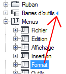 - Cliquez sur le signe plus (+) en regard de la barre d'outils qui contient la commande dont vous voulez modifier le texte de l'info-bulle.