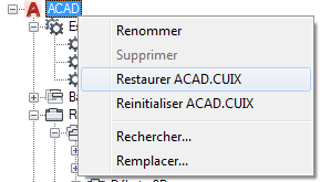 Remarque : Lors de la réinitialisation, seuls les fichiers CUIx du dossier UserDataCache figurant dans l'emplacement d'installation du programme peuvent être réinitialisés.