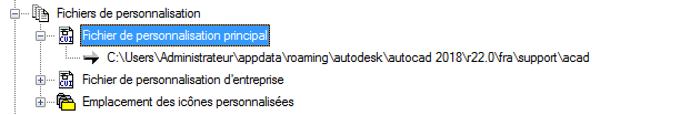 - Cliquez sur le signe plus (+) en regard du noeud Fichier de personnalisation principal ou Fichier de personnalisation d'entreprise pour le développer.
