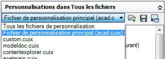 Toutes les nouvelles commandes sont ajoutées directement au fichier CUIx de travail. Si le fichier CUIx que vous souhaitez utiliser n'est pas chargé, sélectionnez Ouvrir dans la liste déroulante Fichiers de personnalisation. Ensuite, parcourez les fichiers et sélectionnez celui de votre choix.