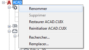 Créez, renommez, réinitialisez ou restaurez des fichiers de personnalisation (CUIx) à l'aide de l'éditeur Personnaliser l'interface utilisateur. Spécifiez le fichier de personnalisation principal ou d'entreprise du programme.