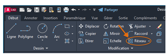 Remarque : Vous pouvez décomposer un réseau associatif pour revenir aux objets individuels et non associés, ce que vous serez peut-être amené à faire si le réseau est asymétrique ou irrégulier. Les réseaux non associatifs peuvent toujours être créés à l'aide de la commande RESEAUCLASSIQUE, qui correspond à la version précédente de RESEAU.