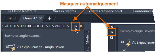 Lorsque vous déplacez le curseur sur la palette réduite, elle se déplie temporairement.