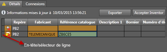 Cliquer sur le sélecteur de ligne (en-tête) afin de sélectionner la ligne entière pour votre composant AutoCAD Electrical.