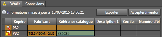 Si des différences existent au niveau des attributs de repère, d'installation ou de localisation, mettez à jour manuellement la valeur du composant AutoCAD Electrical avec celle du composant Inventor. En effet, ces attributs ne font pas partie de l'opération Accepter Inventor.