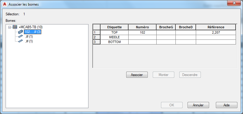 Sélectionnez le bornier à modifier dans la boîte de dialogue Sélection de bornier et cliquez sur le bouton Modifier.
