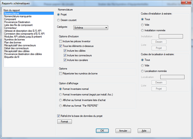 Génère un rapport basé sur les informations provenant des composants schématiques et du câblage.
