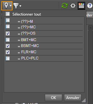 Pour filtrer les composants en fonction des valeurs d'emplacement et d'installation dans l'onglet Affichage de l'emplacement
