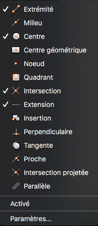 Dans la barre d'état, cliquez sur Accrochage aux objets avec le bouton droit de la souris, puis choisissez Paramètres.