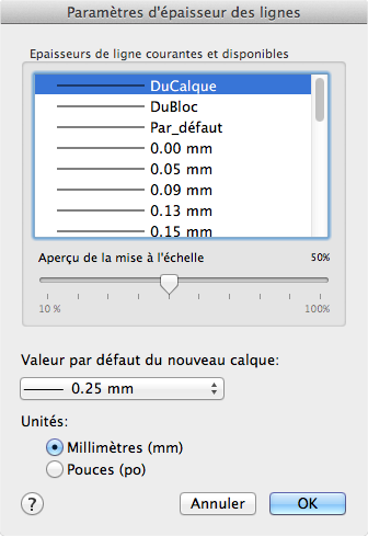 Controls the DEFAULT lineweight for layers. The initial DEFAULT lineweight is 0.01 inches or 0.25 mm. (LWDEFAULT system variable)