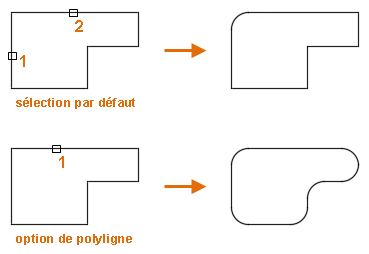 Ajout de raccords ou d'arrondis à des polylignes 2D