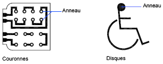 Les anneaux sont des couronnes remplies ou des disques qui sont, en réalité, des polylignes fermées auxquelles une largeur a été attribuée.